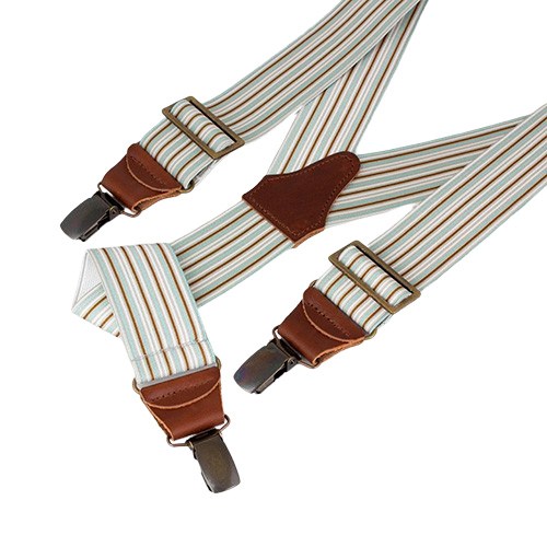 Nahkaosat ovat ruskeaa kasviparkittua nahkaa. Patinoidut lukot on yhdistetty henkselinauhaan nahkaosilla. Takana olkainnauhat on yhdistetty toisiinsa nahasta valmistetulla ruskealla nahkaosalla.