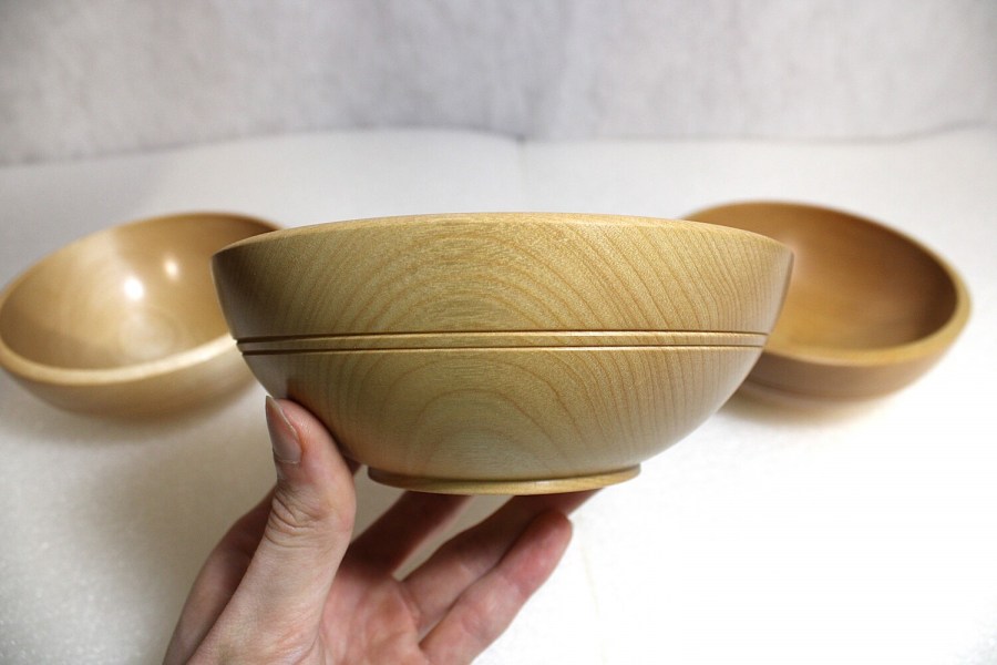 Asikkalassa käsin koivupuusta valmistetut kulhot. Tämänkokoinen puukulho sopii mainiosti aamupalakulhoksi tai vaikka soppakulhoksi ja moneen muuhunkin tarkoitukseen. Käsitelty parafiiniöljy+mehiläisvahaseoksella, joten tuotteet ovat täysin turvallisia käyttää elintarvikkeiden kanssa.