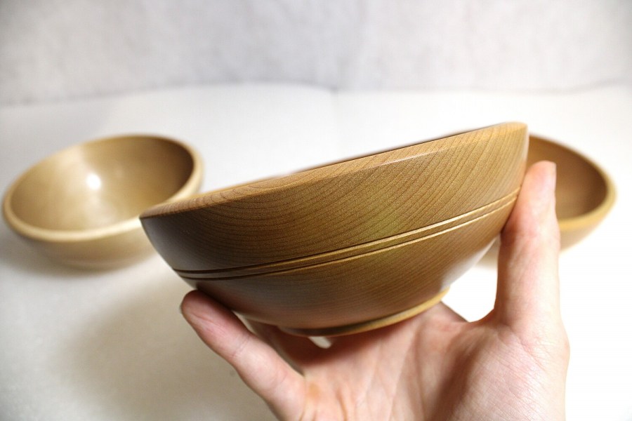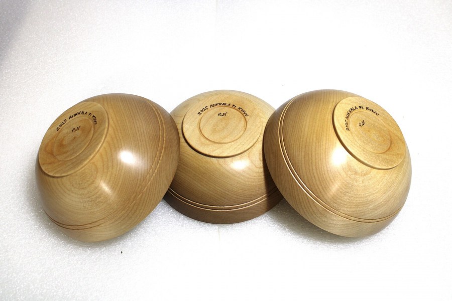 Asikkalassa käsin koivupuusta valmistetut kulhot. Tämänkokoinen puukulho sopii mainiosti aamupalakulhoksi tai vaikka soppakulhoksi ja moneen muuhunkin tarkoitukseen. Käsitelty parafiiniöljy+mehiläisvahaseoksella, joten tuotteet ovat täysin turvallisia käyttää elintarvikkeiden kanssa.